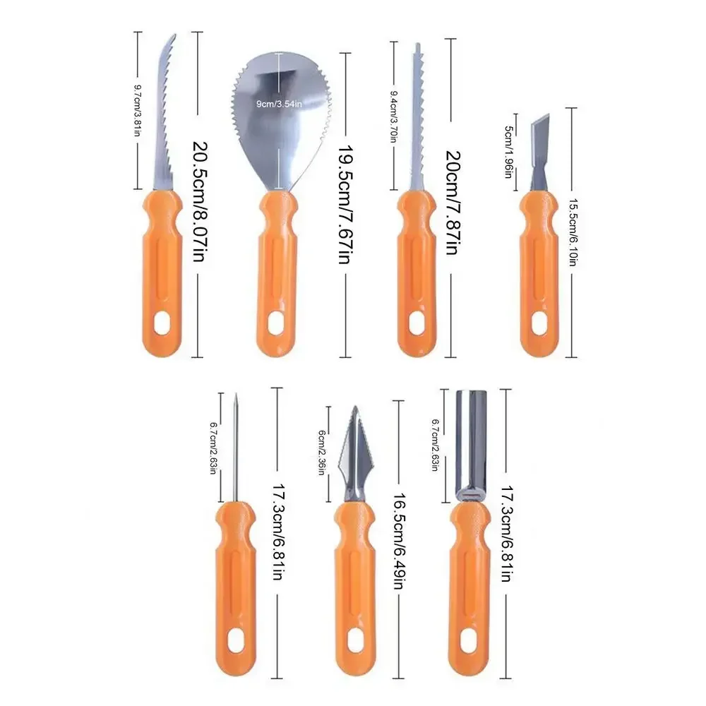 Halloween Pumpkin Carving Set Tools Pumpkin Carving Knife Adults Pumpkin Cutting Supplies Engraving Kitchen Cutting Dropshipping Bullet Points: 1 to Use: Carve your preferrred pumpkin without problems with our supreme pumpkin carving instruments Add candles for a festive contact and have a good time Halloween like a pro 2 right into a Wide Use: Carve intricate designs on not just pumpkins, but also fruits, vegetables, clay, wood, and more with this flexible pumpkin carving software set Enjoy the fun of carving and discover your creativity with ease! three Purposes: This pumpkin carving device set comes with various sizes of chopping and carving tools, best for reducing or shaping particulars in your pumpkin Whether you would like make a straightforward jack-o-lantern or a fancy masterpiece, this set has every little thing it's best to unleash your creativity 4 to Organize: Transport your pumpkin carving set conveniently using the convenient handle featured on our tools When you're done, shop them safely in the integrated case for organized and compact storage 5 Gift: This pumpkin carving package is the perfect solution to create unforgettable recollections with loved ones Gift it to friends and relations who enjoy enjoyable activities and watch as they get pleasure from carving and decorating pumpkins together A pleasant vacation present for all Get within the Halloween spirit with our Easy-to-work-with Pumpkin Carving Kit Perfect for carving pumpkins, chopping or shaping particulars Organize Conveniently and make spooky designs without difficulty This kit also is a Nice Gift to your relations and peers Specification: Name: Pumpkin Carving Tools Size: (approx)21*5*7cm/8*2*2 inches Color: Orange Uses: engraving Material: Stainless steel Packing List: 7* Pumpkin Carving Tools