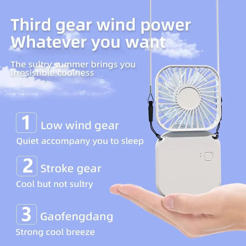 Name: neck putting fan Input: DC 5V/1A Size: 149*70*20mm Color: pink, white, blue Output: 5V/1A Capacity: 400mAh Power: 5W Accessories: small fan/charging cable/lanyard