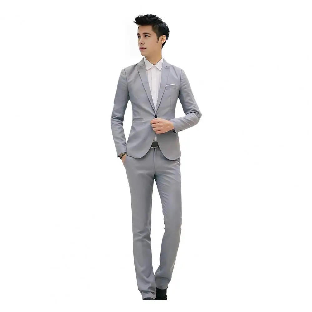 Handsome Slim Fit Suit Slim Fit Men's Suit Set Lapel Coat Mid-rise Pants Solid Color Workwear with Neat Shoulder Lines Formal