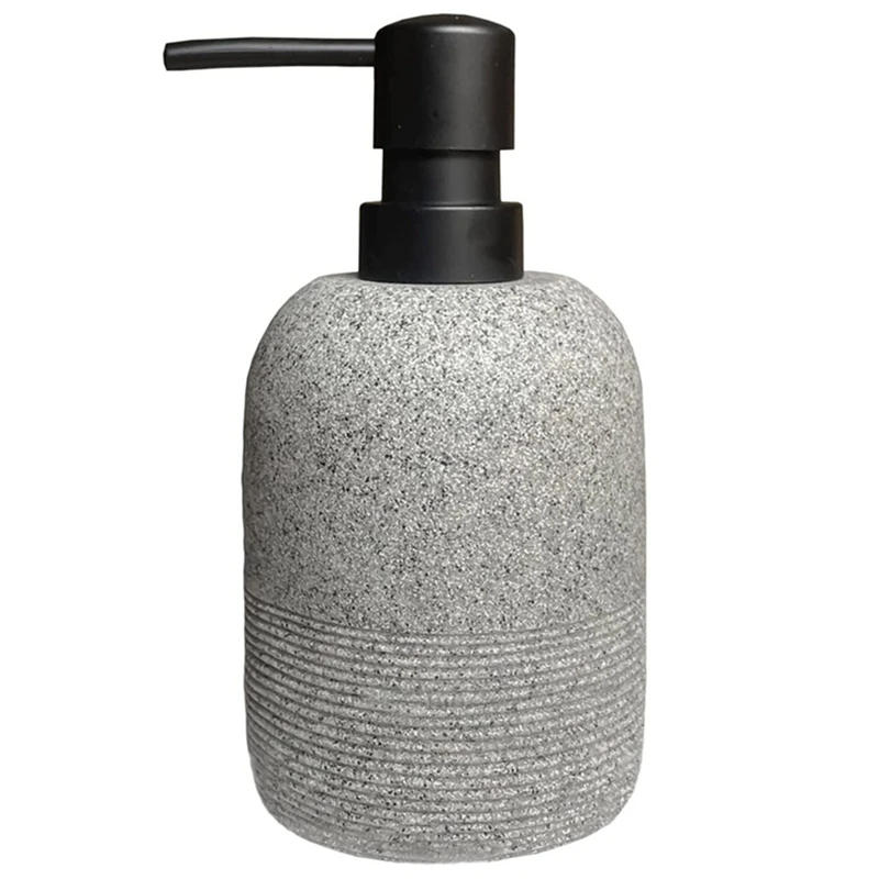 Handwashing Fluid Dispenser ,Soap Dispenser For Bathroom Countertop,Dish Wash Soap Dispenser For Kitchen Sturdy Material: Made of pleasant resin&natural sandstone material, has a pleasant weight, not to tip over. Features of floor gravel lines on the bottom half,It is going effectively with the simple decoration style. Applicable Liquid: This bottle can keep comparable to hand soap, shampoo, bathe dishwash, etc. size: 15 x 7 Material: resin colour: gray / black / Beige Package Contents: 1 x Handwashing fluid Dispenser Only the above equipment content, different products will not be included. Note: Light reflection and assorted exhibits could cause the colour of the thing in the picture slightly assorted from the real thing. The size allowed error is +/- 1-3cm.