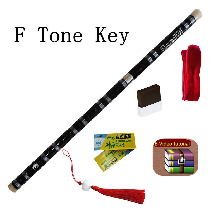 Description Name: Chinese Traditional Bamboo Flute Professional Flute Material: Bamboo Color: Black Holes: 6 finger holes The distinction between the Key: C-D--E-F-G: sound gets higher in turn, shorter in length, thinner in flip Package List: 1 x flute 1 x Flannel flute bag 1 x Tassel(Random Style)If you wish photograph one only,please let me know 1 x flute membrane 1 x membrane glue Notice Please enable 1-3cm error because of guide measurement ensure you don't mind before you order Model 2 Black two section flute Model 3 Wood Flute Model four Aluminum alloy Flute Model 5 Dongxuehua Flute 8881 Model 6 Dongxuehua New Model Flute