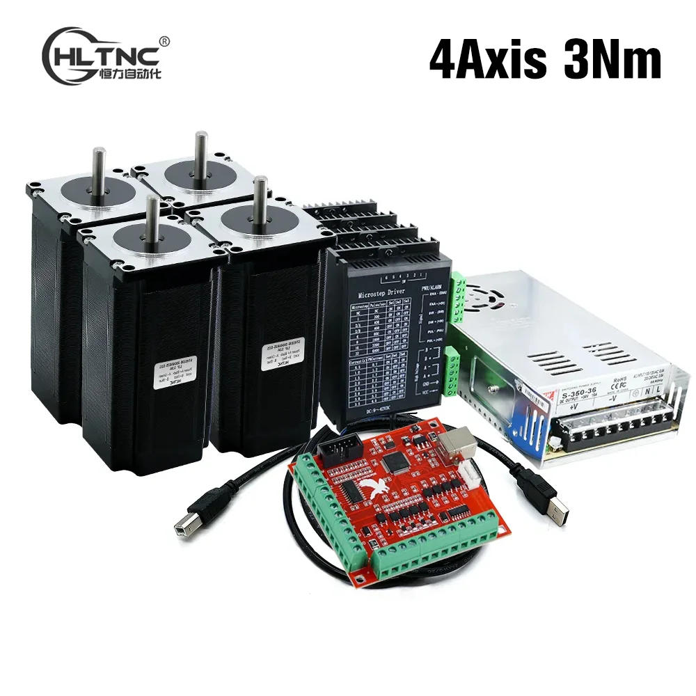 HLTNC 4 Axis kit 3A 3N.M Nema23 425 Oz-in Stepper motor TB6600 driver+350W power supply MACH3 Controller card For CNC Engraver
