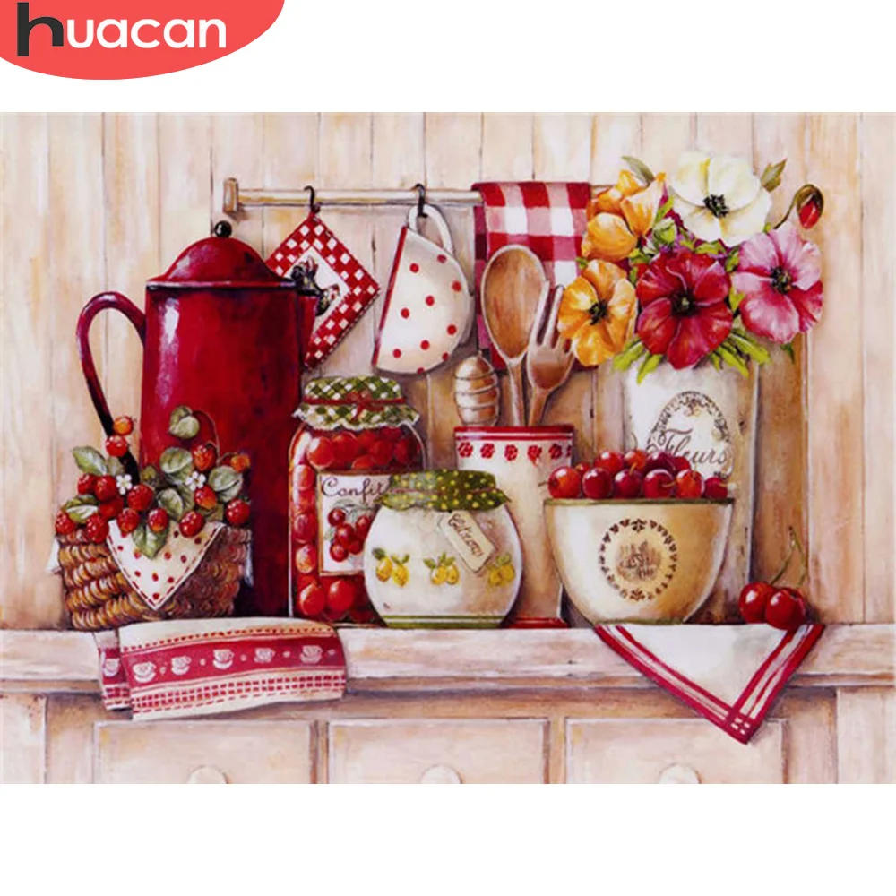 HUACAN 5D Diamond Painting Flower Fruit Full Square Round Drill Diamond Embroidery Cross Stitch Handicraft Kitchen Decoration