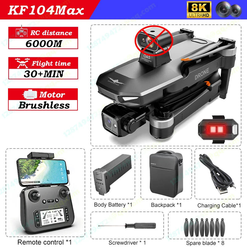 Please be aware the following Drone edition differences: 1 LED RC-OAS: LCD remote +360° obstacle avoidance 2 LED RC-NO-OAS: LCD handheld remote control 3 RC-OAS: Ordinary handheld remote control +360° impediment avoidance four RC-NO-OAS: Ordinary handheld remote control Product Properties Product Name:KF104 MAX Product Color:Black Remote control: rechargeable with screen/without display Flight time: 30+min Flight distance: 5000m Motor Model: 2204 Motor: brushless motor Charging time: about 420min Expanded size: 34*36*8 Folded size: 19*11*8 Body weight: about 620g Drone battery capacity: eleven Remote management battery capacity: 7 1800MAH Gimbal: 3-axis gimbal Product Features 1 brushless stabilized gimbal + EIS electronic stabilization, 5km digital mapping; 2 Remote control with display, comes with the formula (Liberate cell phone) 3 follow/image follow/trajectory flight/fixed-point surround/gesture recognition/one-key return/low energy return/out-of-control return