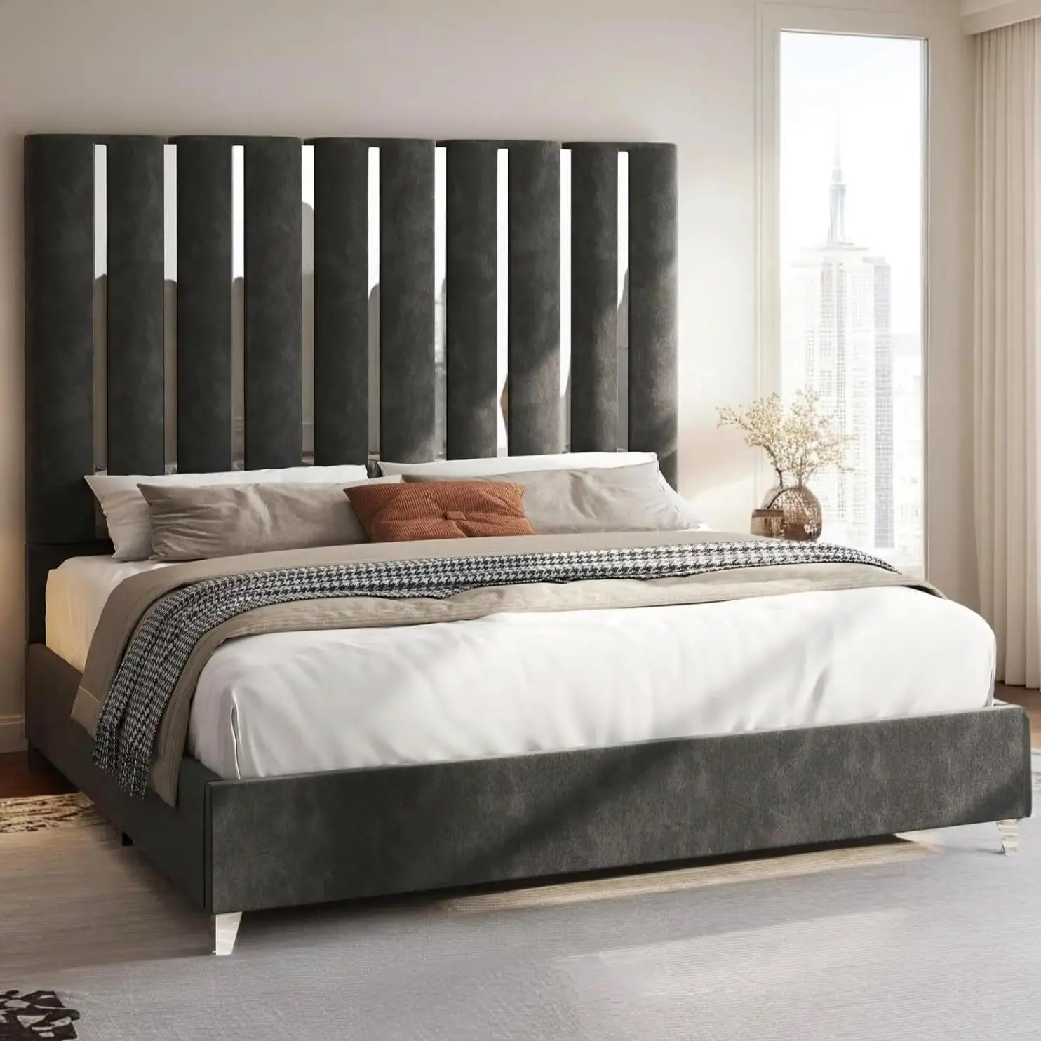 Product Description 1 Easy to Clean 2 Luxury Plating Decor three Easy to collect 58" Headboard Bed Frame Bed Frame Cream Colour Black Velvet Fabric Type Velvet 58' Tall Headboard Headboard 58' Tall Headboard Metal plating strips Feature Metal plating strips Metal legs wooden slats LED lights Cream Colour Black Velvet Fabric Type Velvet 58' Tall Headboard Headboard 52' Tall Headboard Metal plating strips Feature Lift Up Storage Metal legs wood slats LED lighting Cream Colour Ash Gray Velvet Fabric Type Solid Wood 58' Tall Headboard Headboard 50" Tall Headboard Metal plating strips Feature Solid Wood Metal legs wooden slats LED lights Cream Colour Black Velvet Fabric Type Velvet 58' Tall Headboard Headboard 45" Tall Headboard Metal plating strips Feature Led lights Metal legs wooden slats LED lighting