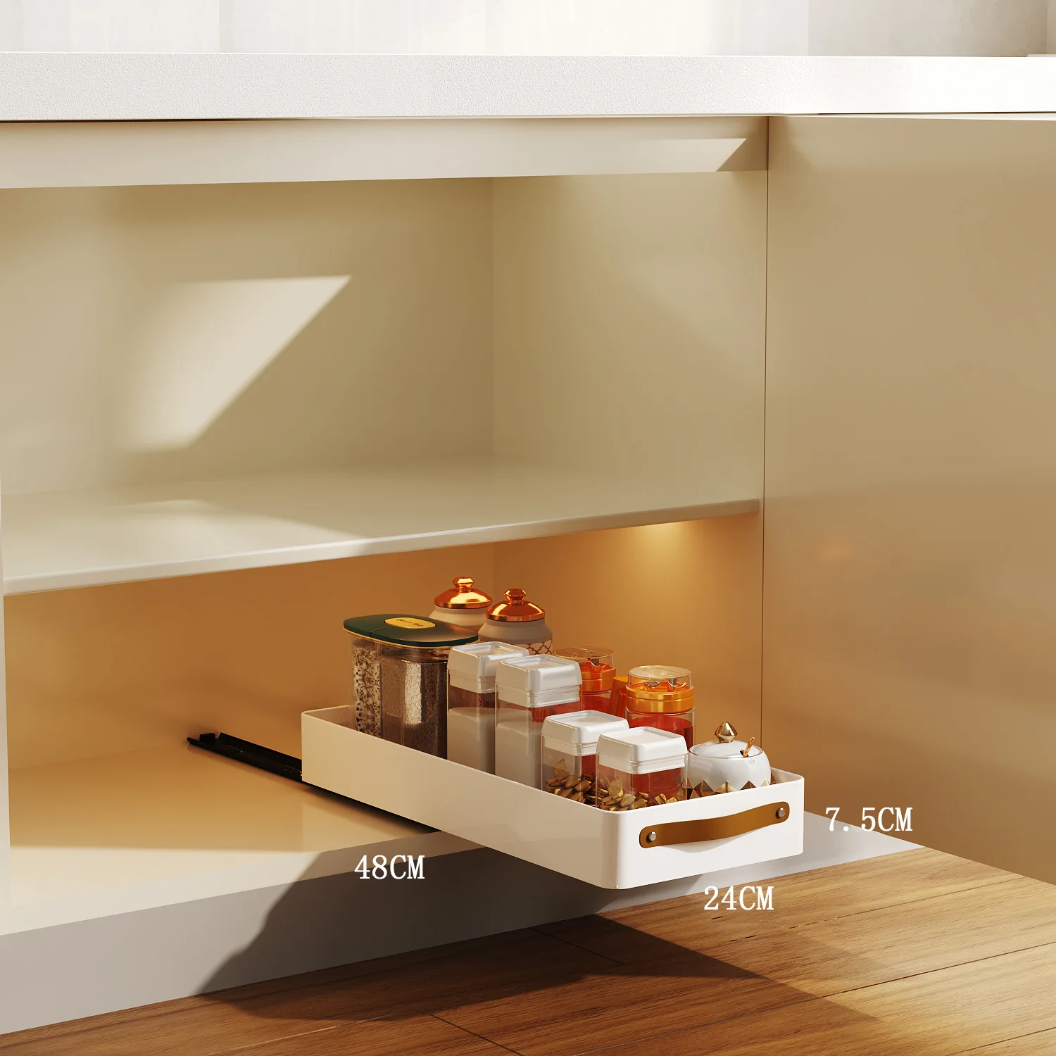 Kitchen Storage Rack with Slide Rails Pull-out Kitchen Drawer Storage Tray Spice Box Storage Rack Cabinets Organizer with Handle