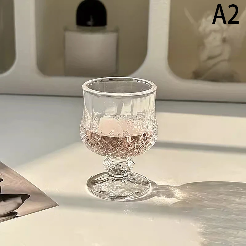 Korean Style Engraved Embossed Small Goblet Glass Cup For Soju Sake Liquor Short Stemmed Glass