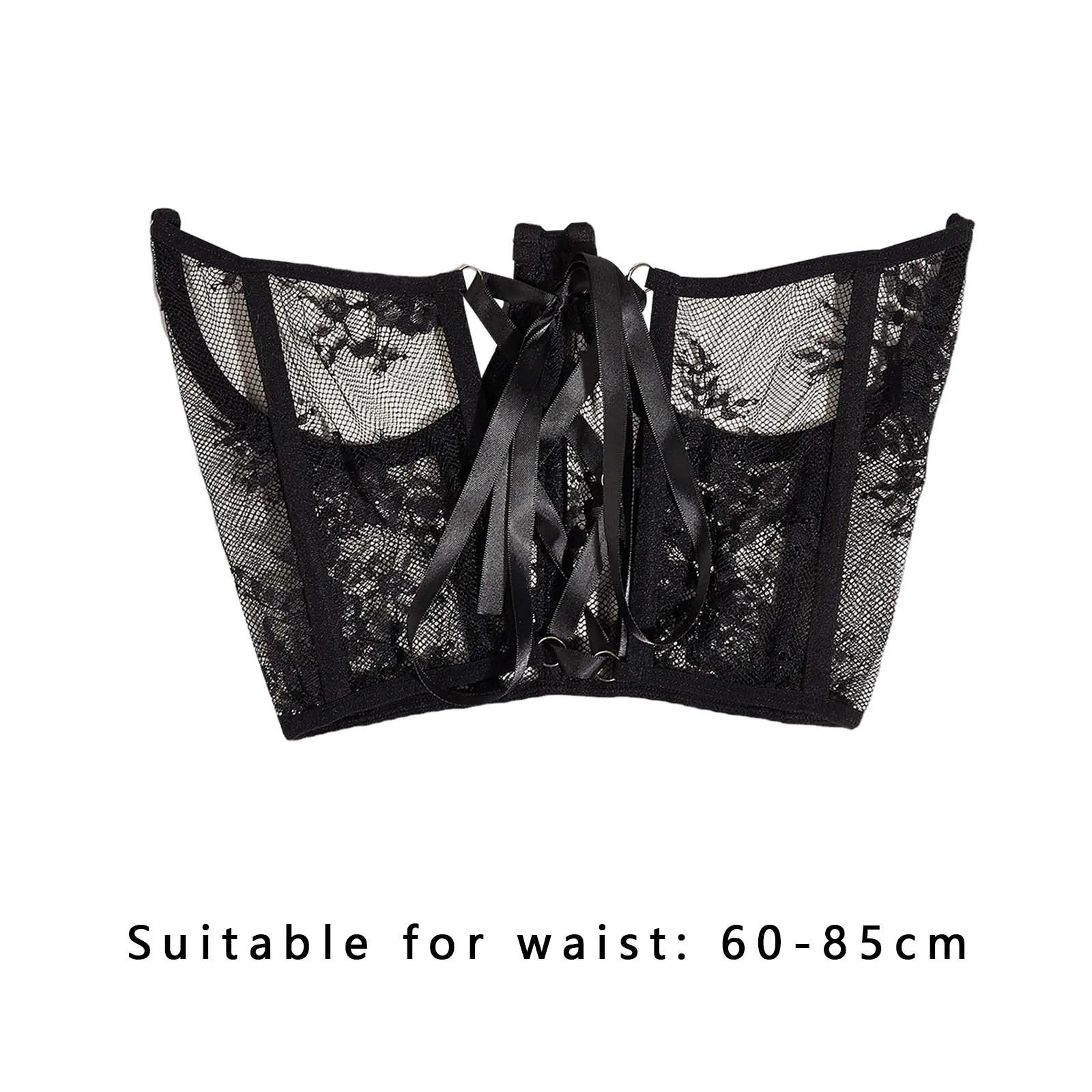 Lace Corset Belt Girdle for Women Decorative Adjustable Tie Back Corset Open Cup Bustier Boned Underboob Waist Cincher Wide Belt