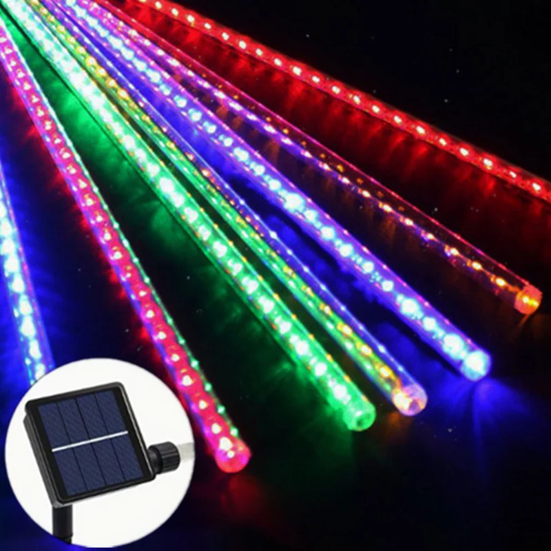 LED Solar Meteor Shower String Lights 8 Tubes Holiday Lights Christmas Tree Garland Wedding Garden Decoration Outdoor Lighting