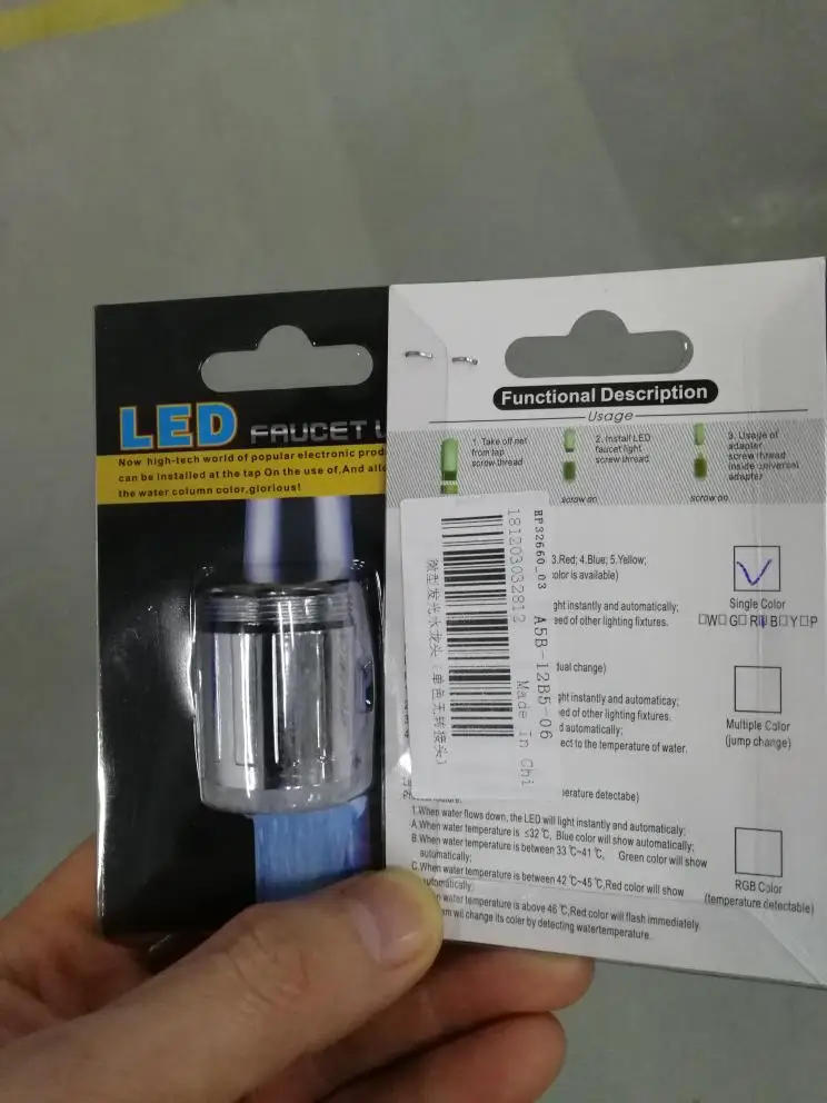 LED Temperature 7 Color Change Faucet Sensitive Faucet Water Saving Kitchen Bathroom Sensor Head Aerator Tap Nozzle ShowerDescription: You might questioned with the temperature of water besides you touch it, now with this system this situation is solved to install and use. This little machine matches on most faucets and lights up a group of LEDs when you switch on the tap the stream of water correct into a exquisite waterfall of sunshine touchy faucet comfortable will exchange colors in line with the temperature of water color`s replacement remind you the water`s temperature batteries and outside energy supply, it's going to light up after water flows down through water flows you a pleasure & tremendous experience chroming material, supreme corrosion resistance, sturdy for lavatory or kitchen to make it fantastic: Material: ABSLED emitting color: Green, Red & BlueSize: 24*35mm(outside diameter * height) Package Included: 1 x LED FaucetNotes: 1. Due to the adaptation between varied monitors, the photographs won't reflect the actual shade of the item. Compare the detail sizes with yours, please enable 1-3cm error, due to guide measurement. Please leaving a message before you give the dangerous feedback, if the products have some problems for your understandings.