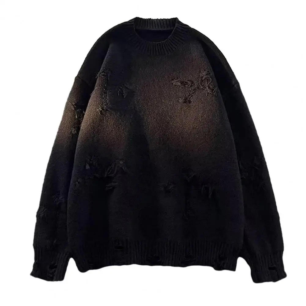 Long Sleeve Men Sweater Men's Retro Ripped Tassel Cross Pattern Sweater Autumn Winter Knitwear for Streetwear Style Loose Fit