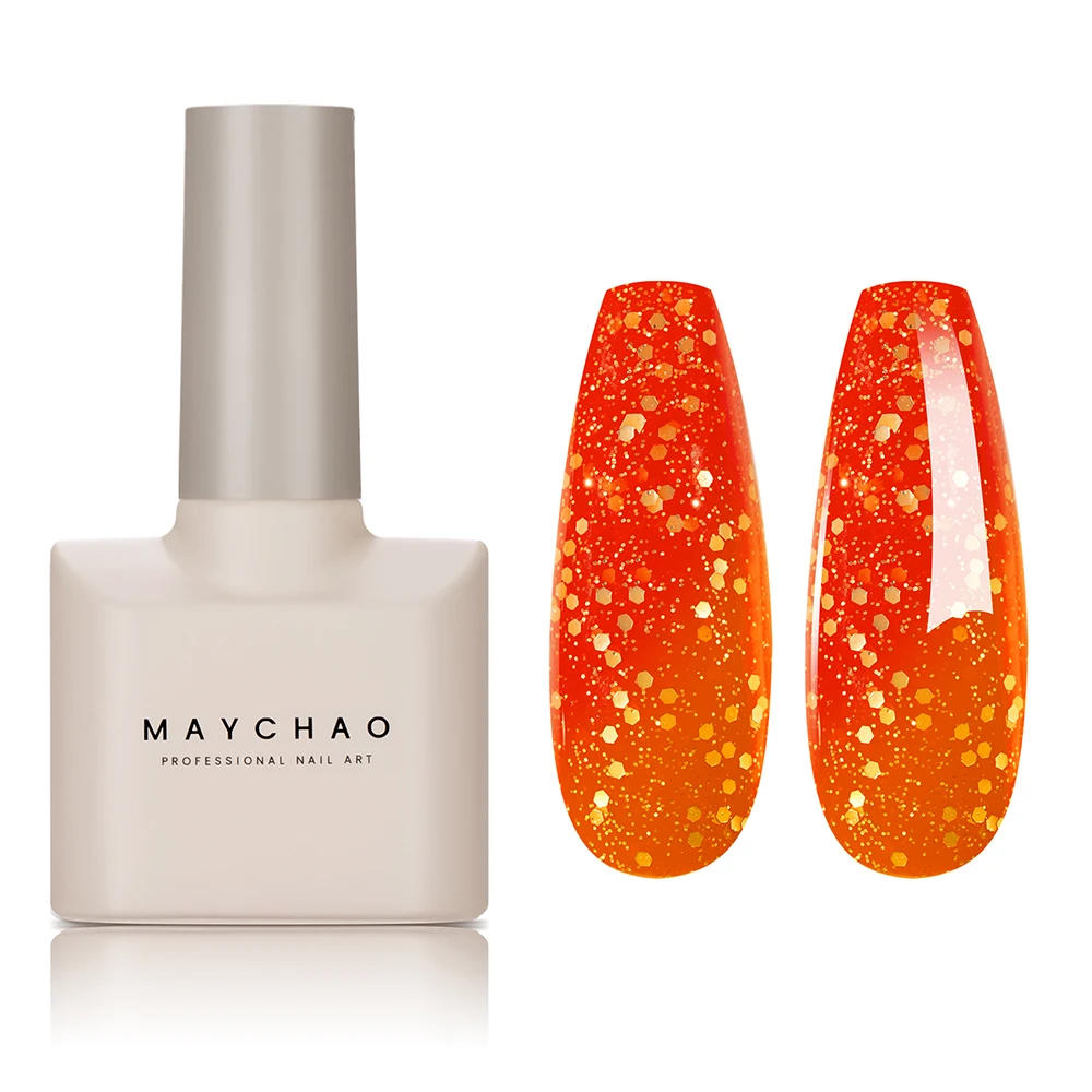 MAYCHAO 12ML Color Changing Thermal Gel Nail Polish 1Pc Cherry Pink-Rosette Glitter Change Soak Off Nail Polish Nail Art Varnish