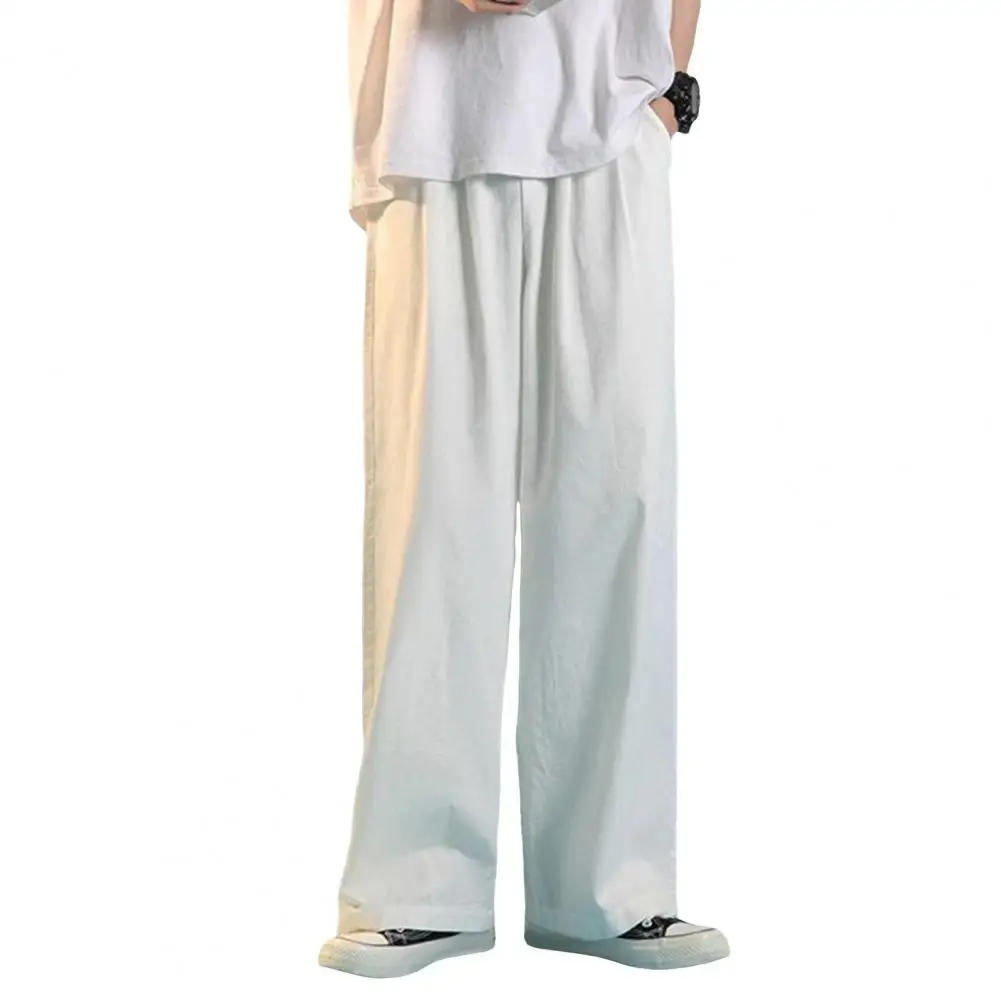 Men Pants Drawstring Elastic Waist Straight Wide Leg Loose Thin Long Sports Trousers Sweatpants Streetwear