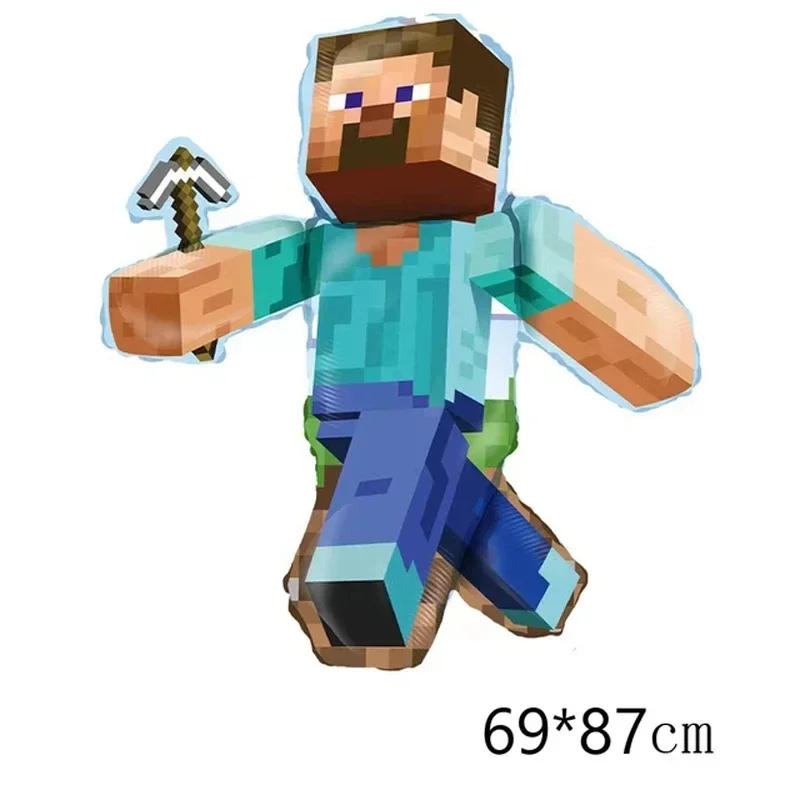 Minecraft Balloons Pixel Game Happy Birthday Banner Party Decoration Cup Plate Disposable Tableware Cake Topper Supplies Toys