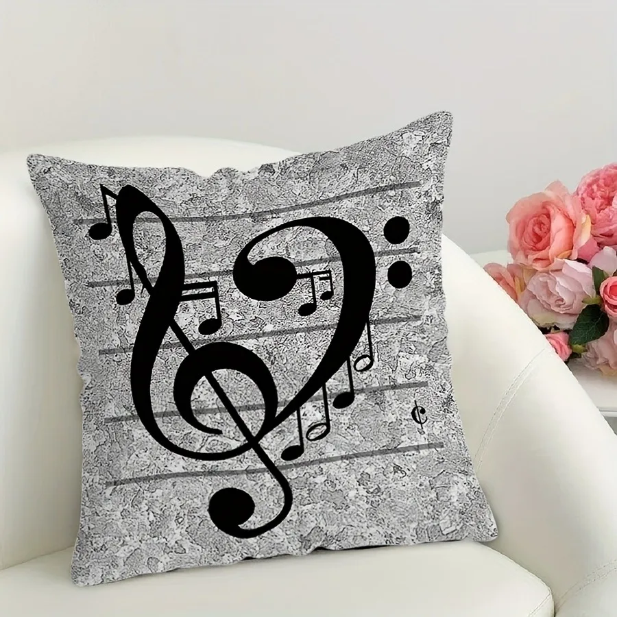 Music themed pillowcase with piano, notes and CD designSuitable for sofa car bedroom decorative cushion cover pillow cover