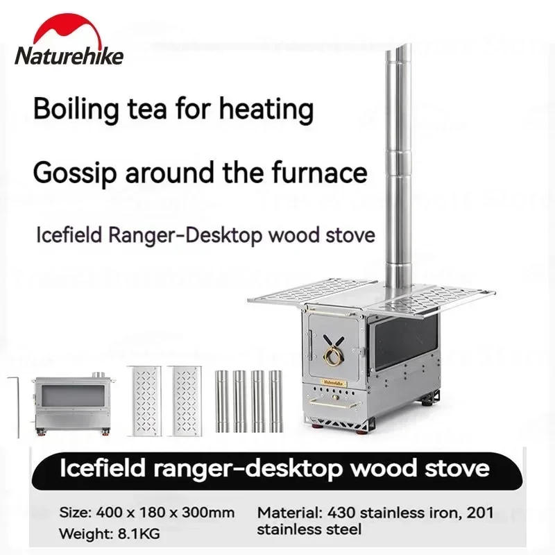 Naturehike Outdoor Heating Firewood Stove Portable Stainless Steel Double Wings Camping Picnic BBQ Cooking Desktop Tent Stove