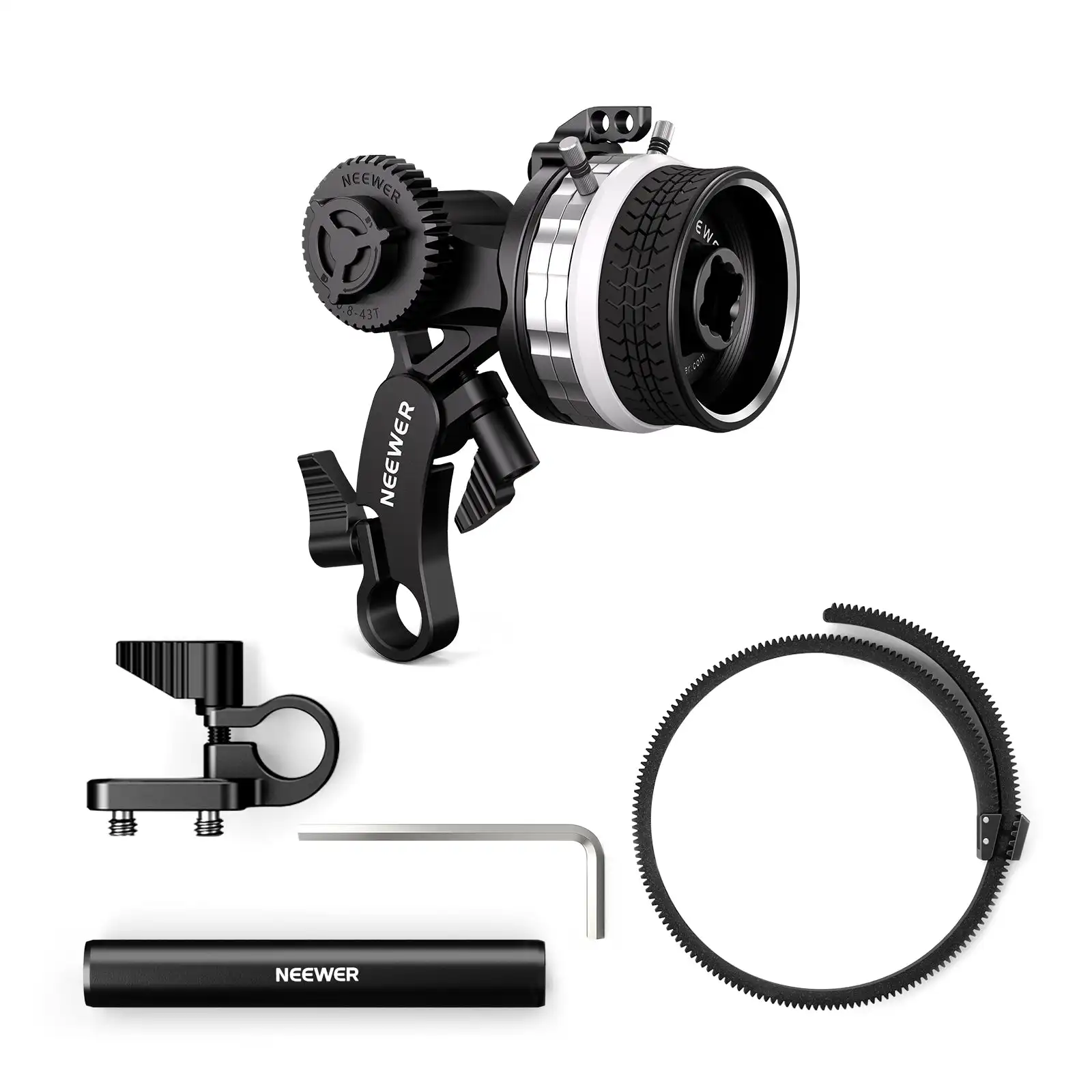 NEEWER PG001 Mini Follow Focus with A/B Stops Features Smooth Manual Focus- NEEWER PG001 Mini Follow Focus enables smooth guide concentration for video recording The adaptable lens equipment ring matches a variety of digital camera lenses up to 114mm in diameter Merely eleven (320g) in weight, the keep on with concentration can reside in your bag and journey around the globe with you Adjustable A/B Stops- The concentration wheel features adjustable A/B not easy stops, you may preset and adjust the appropriate A/B focal length to realize rapid and correct zooming per your shooting desires By loosening the A/B stoppers, you would smoothly obtain 360° infinite focus adjustment and insert them into the stopper holes to prevent lacking Flexible Arm Positions- With a unmarried 15mm rod clamp, the arm can join PG001 to a digicam cage or shoulder rig through a 15mm rod and tilt 138° to accommodate cinema cameras, DSLR cameras, and lenses of alternative sizes 15mm Rod Connection- Included are a common 15mm rod and a rod clamp They can safe the stick with focus to a camera cage or be used for connecting different accessories The modular structure makes the stick with concentration brief to detach and simple to shop Comfortable Operation- Coated with soft, nonslip silicone rubber, the main target knob is completely happy to use Designed with a great damping mechanism, the focus wheel offers optimum rotation actions which are neither too tight nor too unfastened Specifications Model: PG001/PG003 Material: Aluminum alloy, plastic Color: Silver/Black Rod Diameter: 15mm Weight: eleven / 320g Package Contents 1 x Mini Follow Focus 1 x Lens Gear Ring 1 x 15mm Rod 1 x Rod Clamp 1 x L Shaped Hex Key