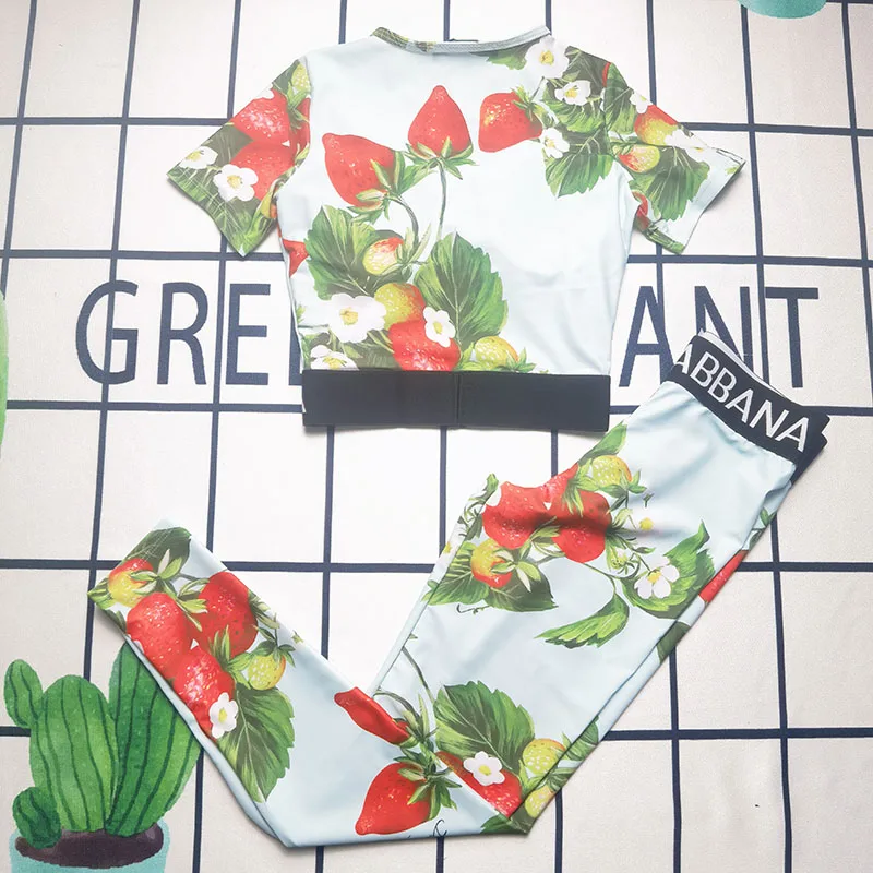 New Design Two-piece Set Flower Pattern Outfit High Waist Legging Letter Sport Set Elasic Skinny Sexy Short Skirt Crop Top Suit