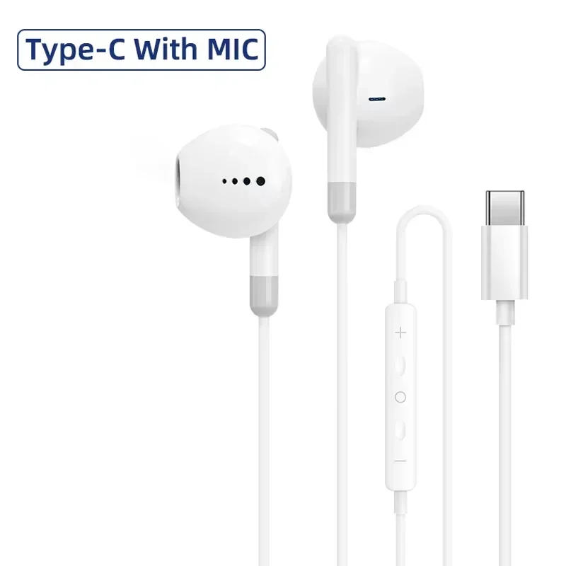 New Half in Ear Wired Earphones With Microphone 3.5mm/Type C For iPhone 16 15 Android Samsung S24 S23 Iconic Brand 15 Gaming Headphone