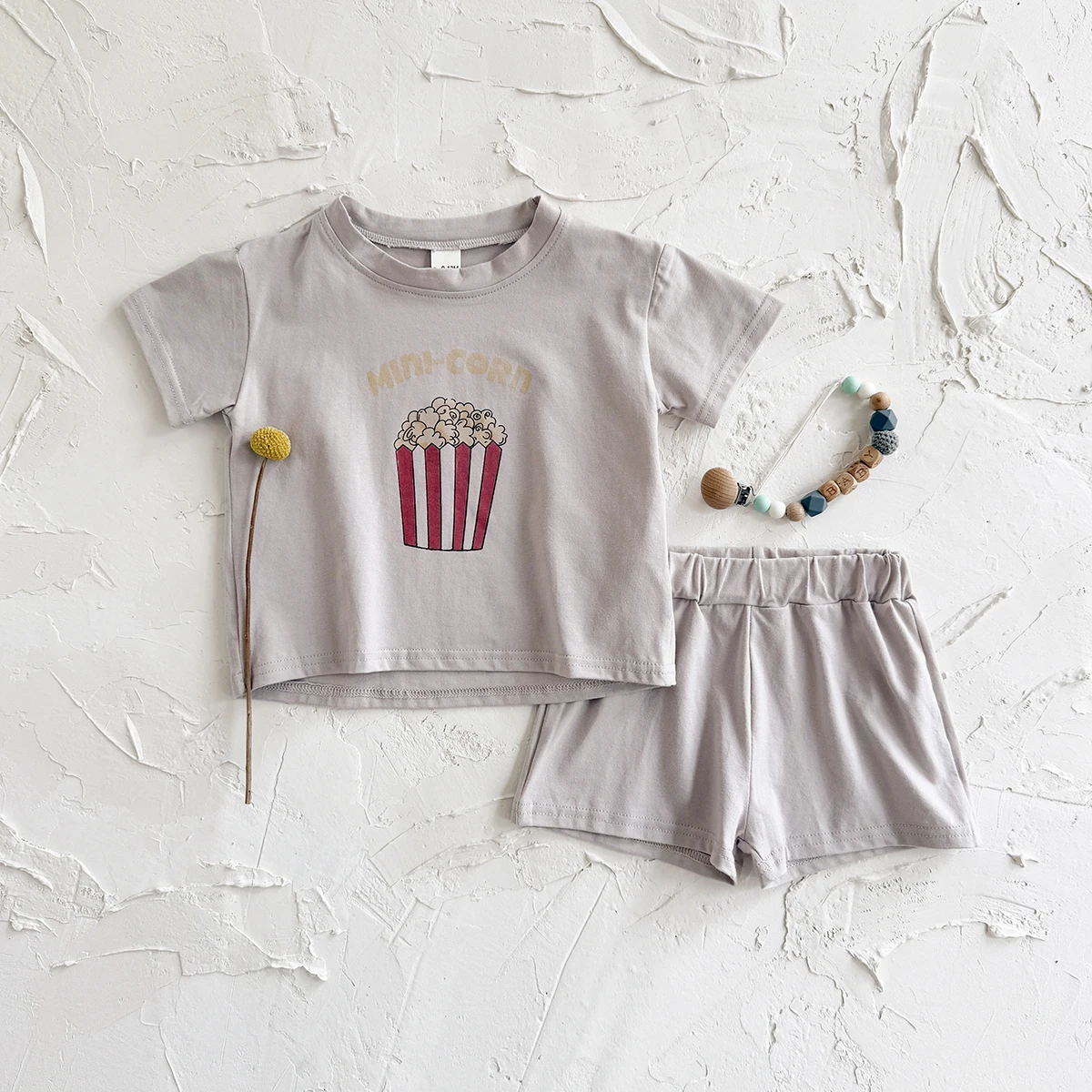 New In Summer Kids Baby Girls Boys Clothing Cool Summer Popcorn Pattern Short-sleeved Shirt + Shorts Set Newborn Baby Outfit