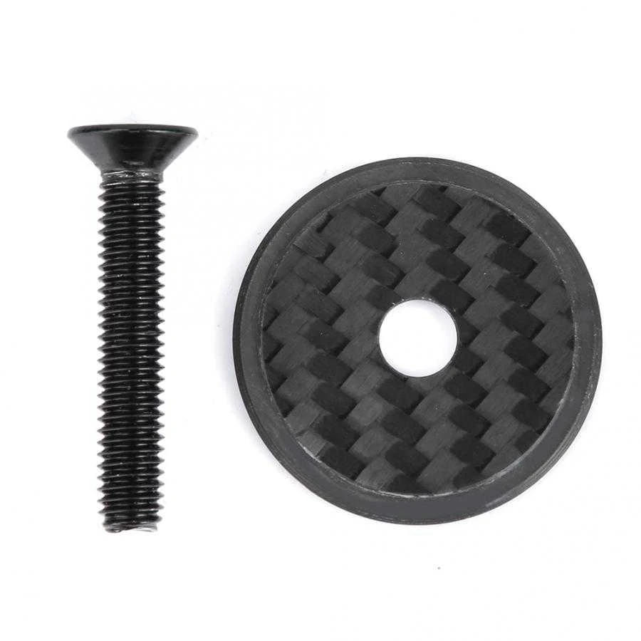 Bike Headset Cap Carbon Fiber Bicycle Stem Headset Top Cap with Screw Mountain Bike Front Fork Top Cover Bike Parts Features: fiber material, super lightweight, sturdy and water resistant for mountain bicycles stems and forks Mountain bike stem headset height cap with screw, preserve headset from being dirty by means of dust and fashion design will accessorize your bicycle as well Easy and convenient for installation, directly fitment Specifications: Condition: one hundred pc Brand New Material: Carbon Fiber Color: Black Weight: 7 g / 0 oz(approx) Package List: * Headset Cap * Screw