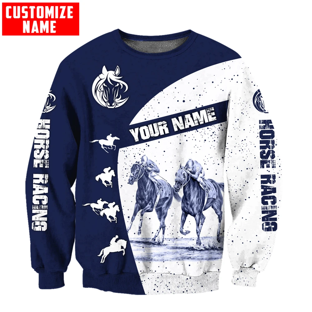 Personalized Name Horse Racing 3D All Over Printed Mens hoodies & Sweatshirt Autumn Unisex zipper Hoodie Casual Sportswear DW892