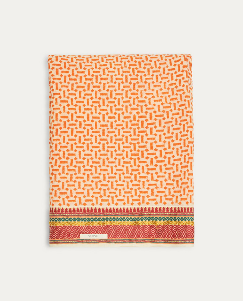 Cotton sarong with geometric print. Fabric edging.