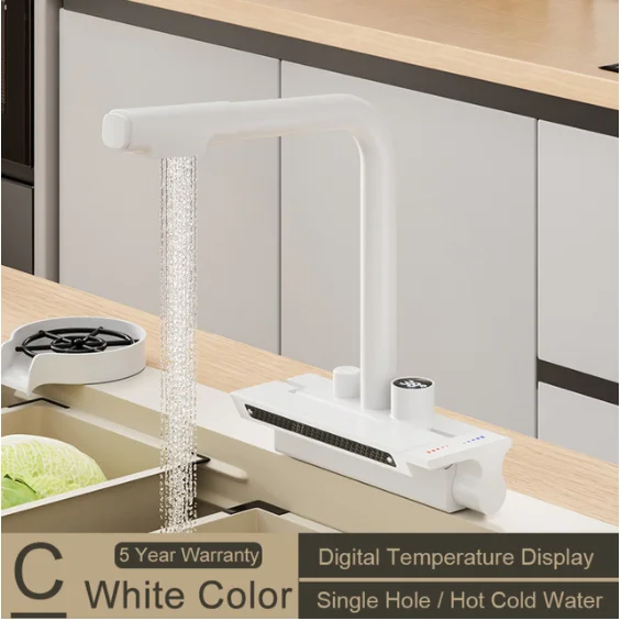 Rain Waterfall Kitchen Faucet Kitchen Sink Washing Pool Tap Single Hole Pull Out Temperature Digital Display Bathroom Faucet
