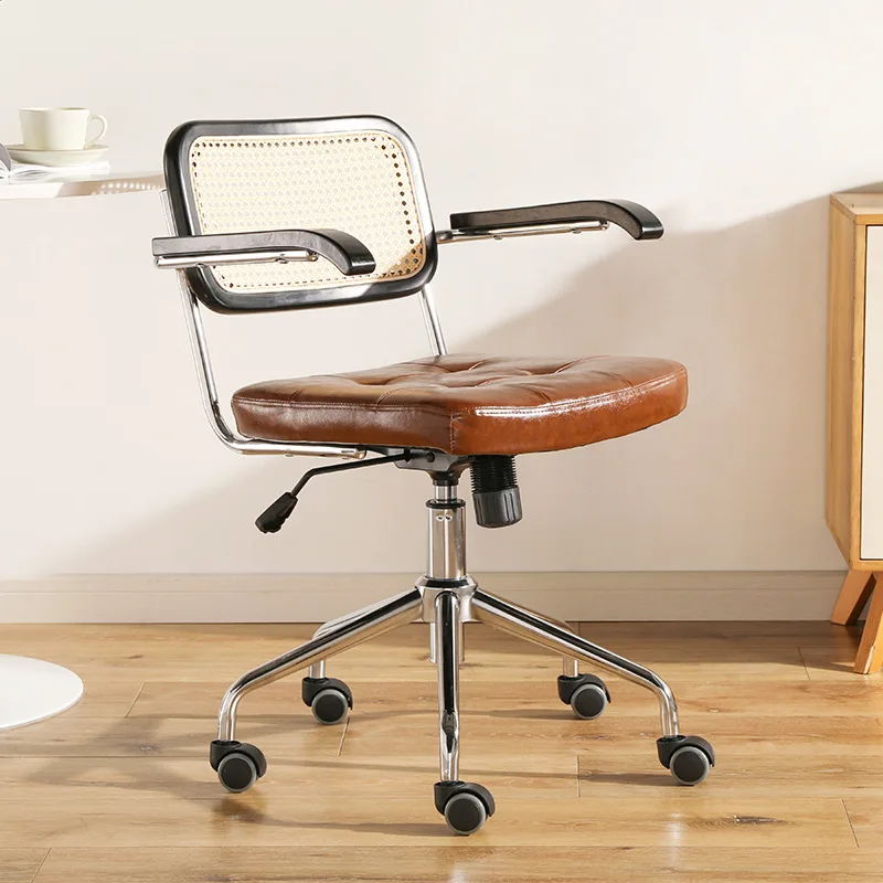 Retro rotating chair Rattan computer office chair Japanese comfortable storage study desk seat breathable armrest rattan chair