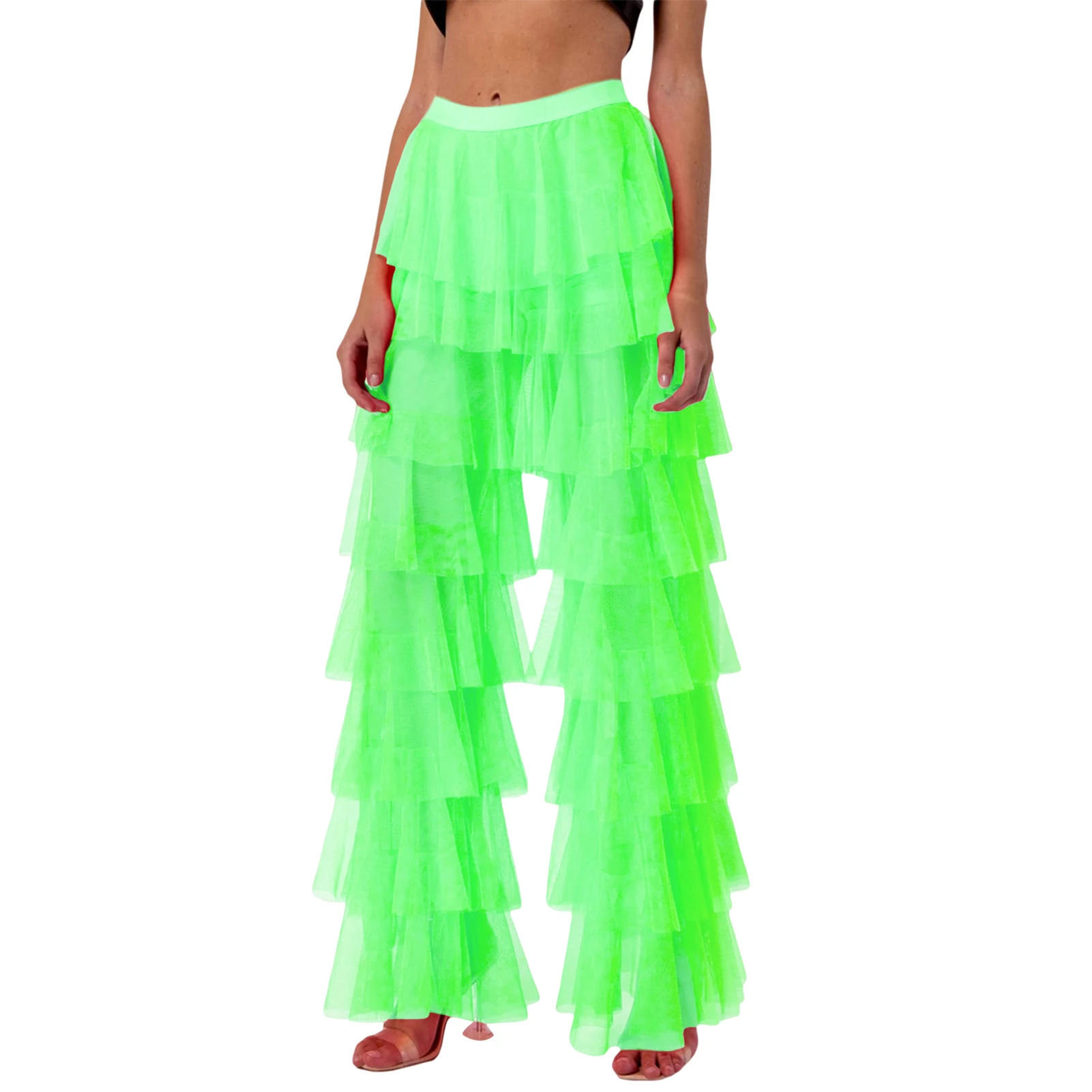 Ruffle Yarn Tulle Pants Solid Color Women Wide Leg Trousers High Waist Flare Trousers Multi Layer Spicy Girl Streetwear Suit