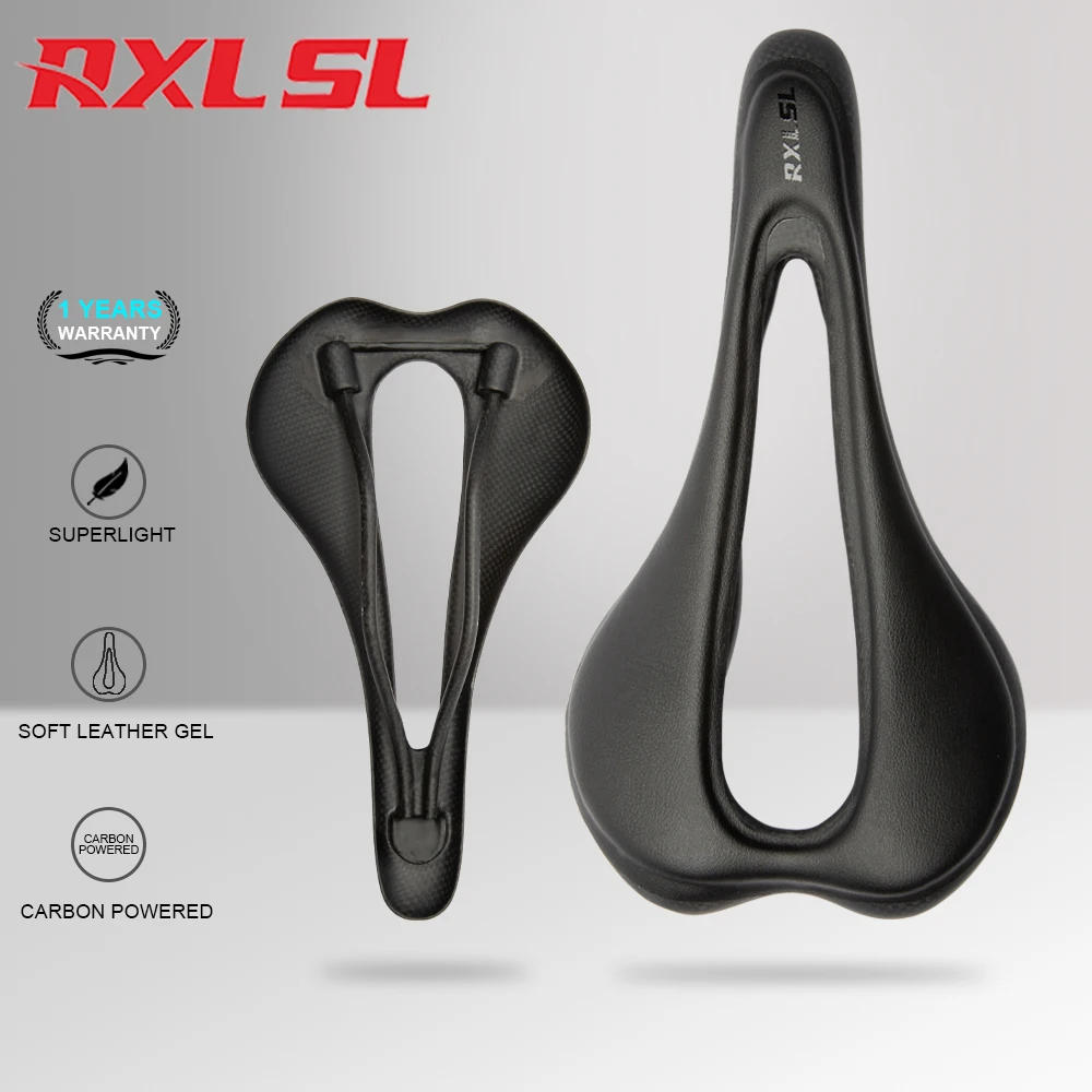RXL SL Bicycle Saddle Carbon+Soft Leather Gel Comfort Bike Mtb Saddle 280*145mm Mountain-bike Road Seat for Bicycle Accessories