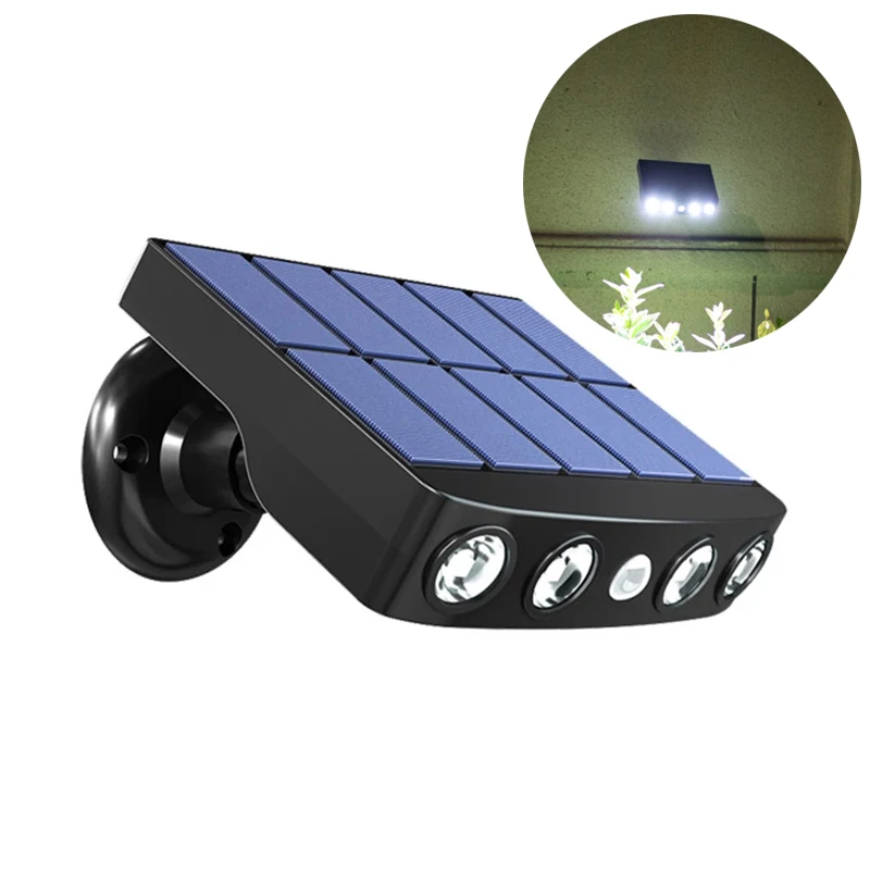 Motion Sensor Solar LED Spotlights Outdoor Waterproof Wall Light Street Lamp Sunlight for Exterior Country House Garden Balcony Features: --Outdoor Solar Light: Solar powered, environmentally friendly, no wiring. High-powered and high-efficiency polycrystalline photo voltaic panels with a long life span. Waterproof IP65 and Heatproof Great outside security night gentle Switch: Recharged through method of Sunlight and store energy for in a single day lighting. Works automatically at night without workforce switching on and off. Over 12 hours lights time after faster or later fee Panel: Intelligent Energy-saving, high-quality photo voltaic panels, and high-bright LED lights. LED lifespan is lasting 100,000 hours, working time up to 10h of full charged Light Modes: 1. Press the substitute button as soon as - PIR movement sensor + Slightly bright. 2. Press the exchange button twice - Just PIR motion sensor, when it detects movement at night. The Motion sensor turns the light on and off automatically. 3. After three hours of continuous lighting fixtures to mode 2 of Application: Outdoor panorama lighting, storage door, pedestrian places. Suitable for walls, courtyards, gardens, porches, lawns, paths, gutters, etc. Specification: Type: Motion Sensor Solar LED SpotlightsMaterial: ABSSolar panel: 5V 300mABuilt-in battery: lithium battery 3 1200mAhLED Quantity: 4pcs (1w/1pc)LED Color: Warm White / Cool WhiteSensing distance: 8-10 metersSensing angle: 120°Charging time: 4-6hUse time: 8hWaterproof rating: IP65Package list: 1 x Solar LED Spotlight four Lighting Modes: - OFF: off mode, the indicator mild is red;- First gear: Some humans coming, brightly light up for 15-30 seconds, when no person lighting off;- Second gear: Some people coming, brightly gentle for 15-30 seconds, and when there isn't any one, the sunshine is usually vivid and weak;- Third gear: No matter if no one is there, and the vulnerable mushy is usually on.