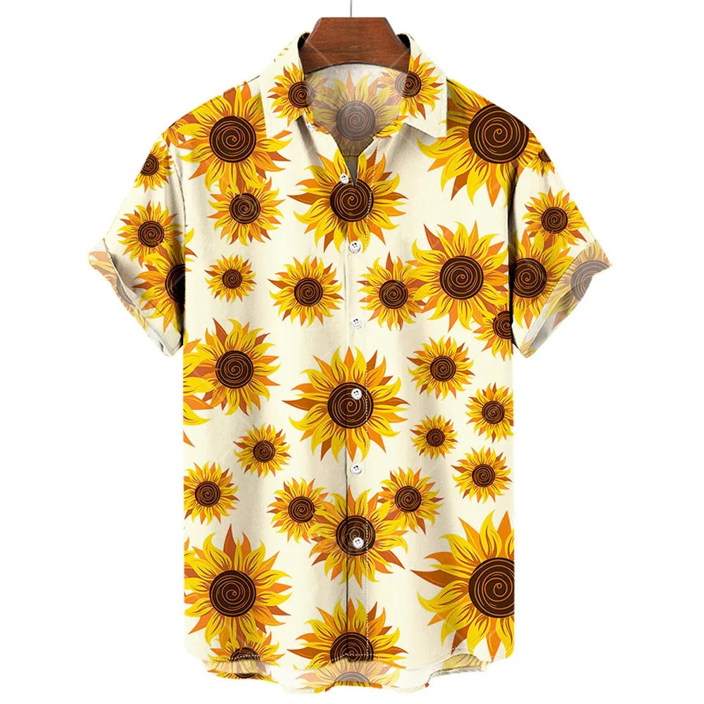 Sunshine Sunflower Print Hawaiian Men's Beach Style Short-sleeved Shirt Loose Casual Large Size Men's Shirt