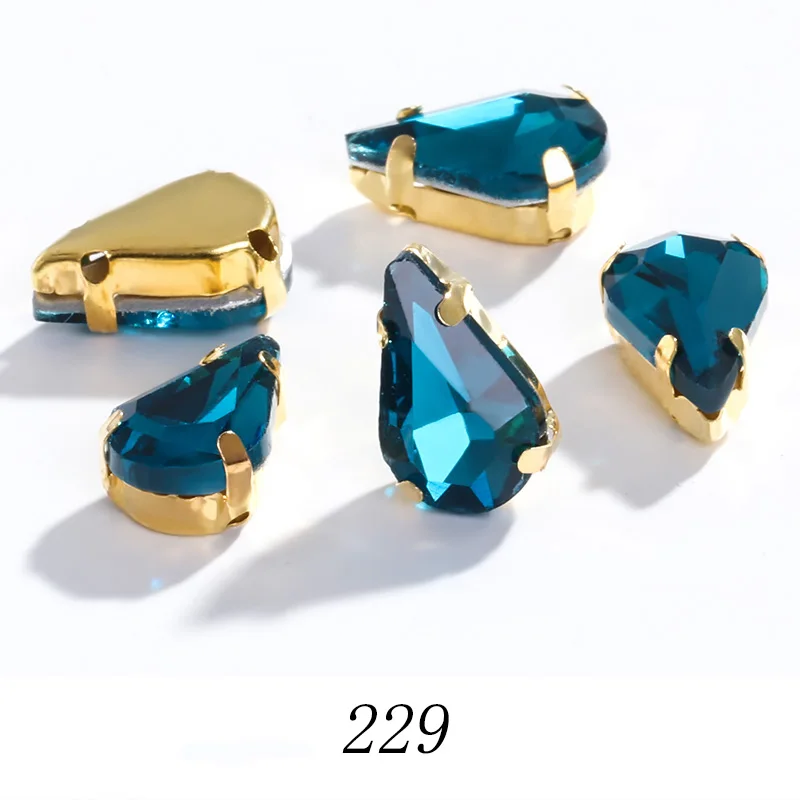Teardrop Shape Glass Rhinestone With Golden Claw Sew On Crystal Stone Strass Diamond For Wedding Dress Bag Crafts Embellishments