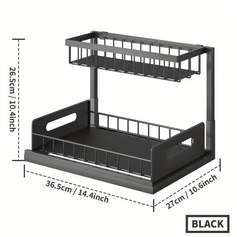 2 Tier Under Sink Sliding Cabinet Basket Organizer Drawer Pull Out Cabinet Multi-Purpose Sink Organizer for Bathroom Kitchen High-Quality: Our below sink organizer is manufactured from carbon steel, which is sturdy and resistant The baking paint process makes the surface more gentle with nice anti-rust and might keep the metal luster even within the moist bathroom or greasy kitchen The sink rack has a carrying capacity of as much as 55lbs and can hold heavier items It will not deform although it putting heavy objects for an extended time, Pulling also is very delicate Multifunctional Storage: The shelf organizer is acceptable for bathrooms, kitchens, dwelling rooms, closets, garages, laundry rooms, offices, and so on It can be used to organize kitchen items, spices, cleansing supplies and bathroom toiletries, food, towel, vegetable and fruit, beverage and snack, an office file, book, cosmetics, etc Note: 1 to the various video display and light-weight effect, the actual shade of the thing might be slightly varied from the colour confirmed at the photos Thank you! 2 allow 0 measuring deviation thanks to handbook dimension