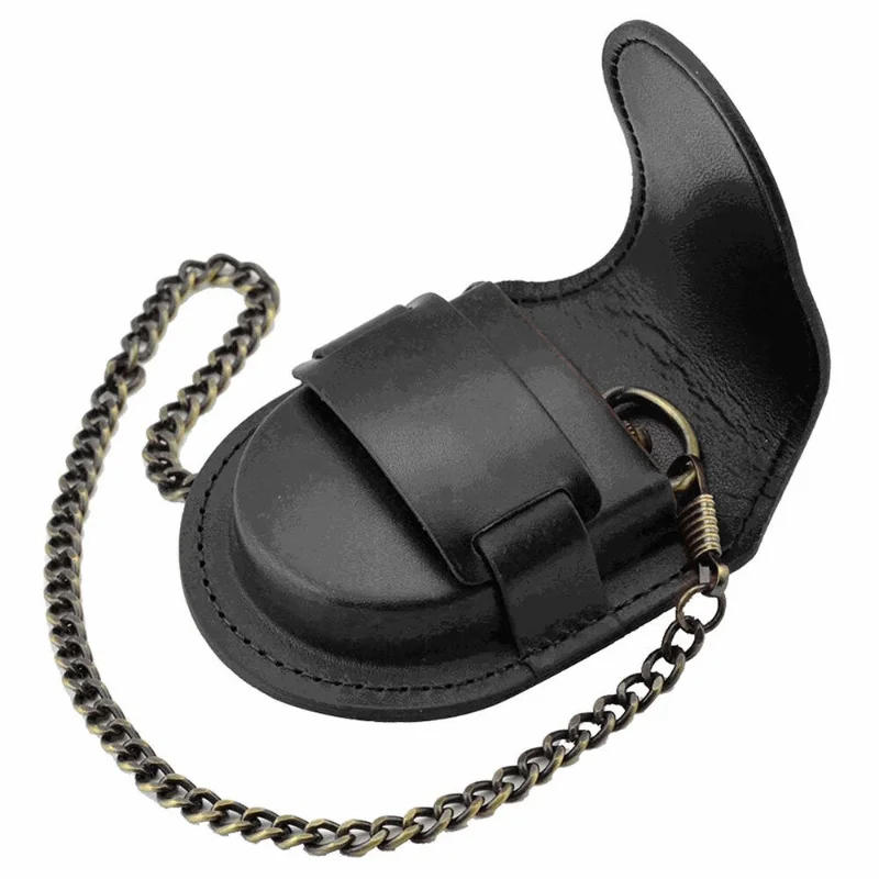 Vintage Leather Case Pocket Watch Holder Bronze Chain Holster Storage Case Pouch Bag With Chain For DIY Crafts