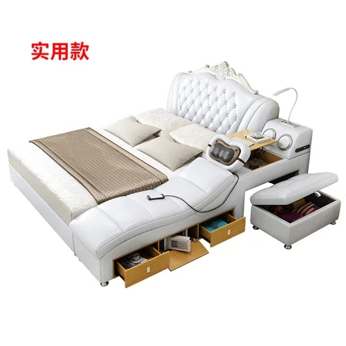 White High End Double Bed Designer European Luxury Modern Twin Bed Frame Platform Multifunctional Cama Box Casal Furniture