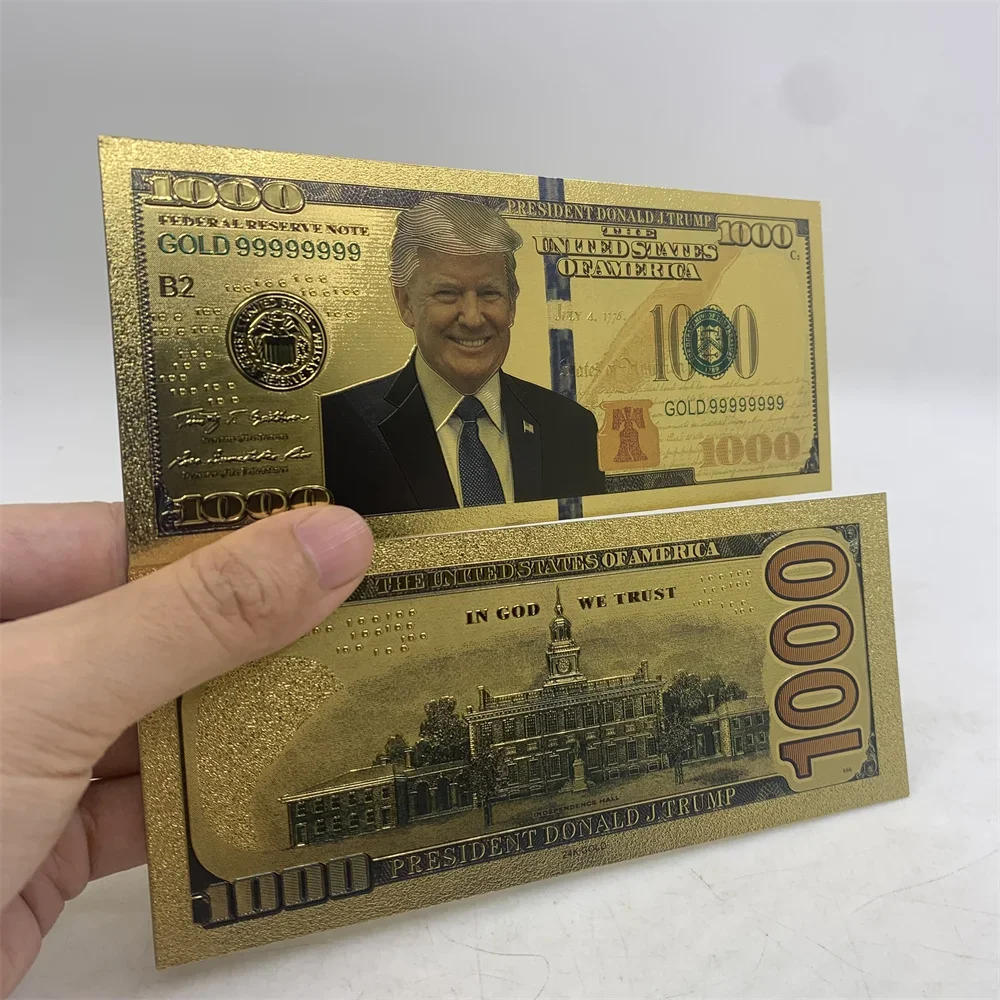 Wholesale US $1000/$10000/$5000 24K Gold foil banknote 2024 trump collectiboles Golden card for supporter collection gift