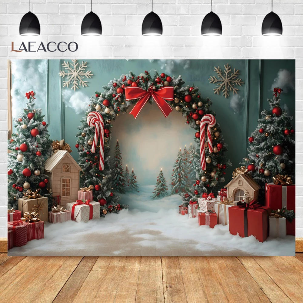 Winter Christmas Photography Background Arch Door Xmas Tree Chic Wall Gift Indoor Decor Banner Kids Portrait Photocall Backdrops