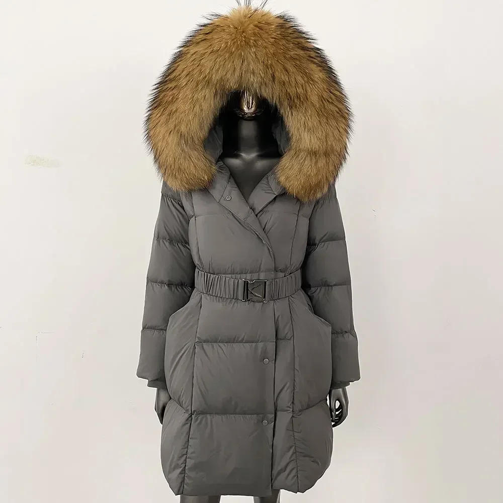 Winter Hooded Whitte Duck Down Coat 2024 New Oversize Ladies Outerwear Long Real Fur Jacket Women Natural Fox Fur Collar Jacket