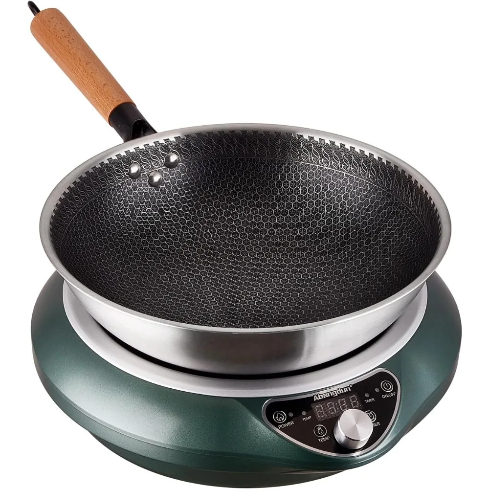 Material Plastic Special Feature Not pulsing/cycling heat Color Green Capacity 6 Quarts About this item 【Wok Induction Cooker For Cooking】:FCC Certification 110V-120V Induction Wok Cooktop compatible for all North American families and advertisement functions Its compact design is perfect for outdoor settings 【Not Cyclic/Pulsed Heating】:This induction wok burner affords stable heating without cycles or pulses If no cookware is detected within 10 seconds, an "E1" error will appear Simply replace the cookware to proceed cooking Induction cooktops use electromagnetic induction, which requires magnetic cookware like stainless steel, solid iron, or enamel cast iron Non-magnetic cookware (such as glass, aluminum, or copper) can't generate the necessary heat, inflicting the cooktop to reveal an E1 error when no well matched cookware is detected 【High Efficiency】: This concave induction cooktop is also well suited with flat-bottom pans The Wok Induction Cooker is extra efficient than normal gasoline stoves, electrical scorching plates, or electric ranges, offering quick heat-up and quicker cooking times When the temperature turns into too high or the pan is faraway from the surface, the induction burner robotically stops operating With no open flame and no exhaust emissions 【Double Switch】:This induction hotplate facets two swap modes: a button change (press on/off) and a knob swap (press switch) Power stages from 200W to 1700W temperature stages from 176°F/80° to 464°F/240°C Long press for 3 seconds to soon modify the levels