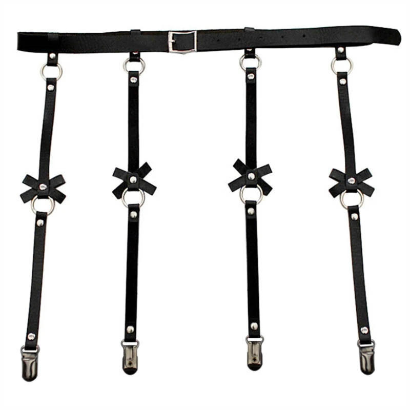 Women PU Leather Bowknot High Waist Garter Belt Suspenders Metal Clip for Stockings