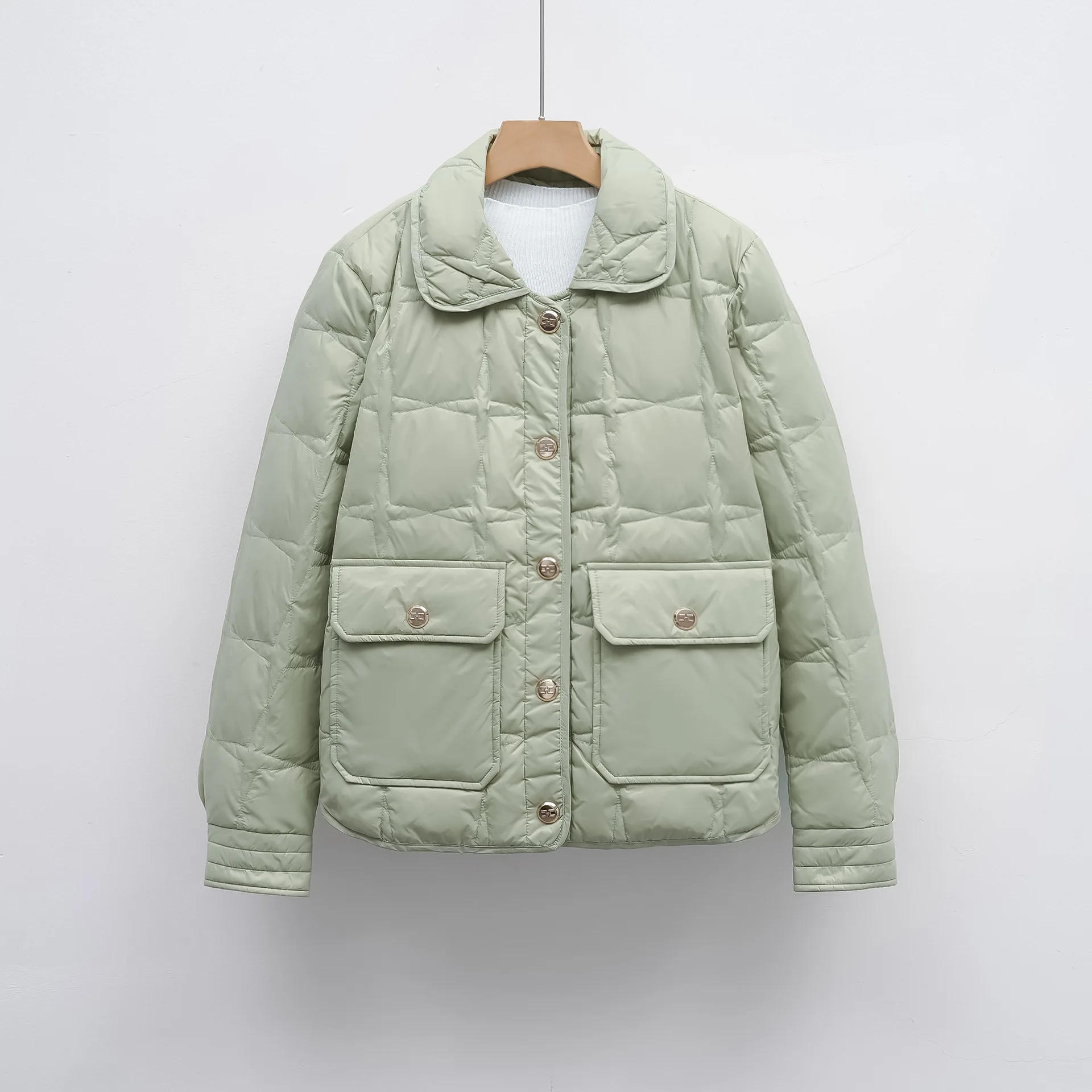 Women Short White Duck Down Jacket Stand Collar Female Loose Casual Soft Warm Coat Covered Button Big Size Good Quanlity