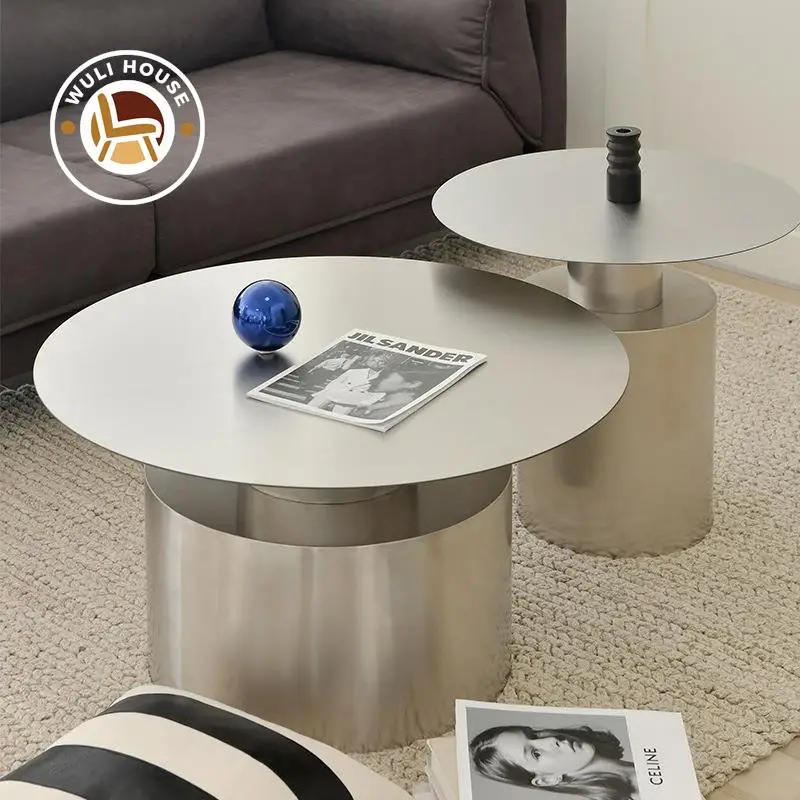 Wuli Minimalist Modern Stainless Steel Coffee Table Combination Nordic Creative Living Room Sofa Light Luxury Metal Coffee Table