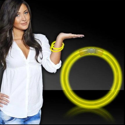Our 8'' Yellow Supreme Glow Bracelets are sold 50 necklaces per tube. Connectors are included but not attached. No other promotion is combinable with our Glow Bracelets priced $4.00 a tube or less. Simply crack and shake the Glow Bracelets for hours of glow in the dark fun.