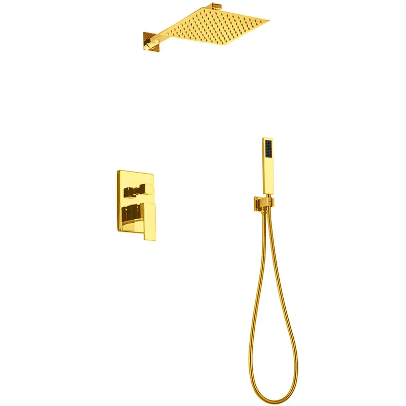 Bathroom Brass 10 Inch Waterfall Rain brass Shower Head Arm Gold Wall Mounted Shower Faucet Set BL978
