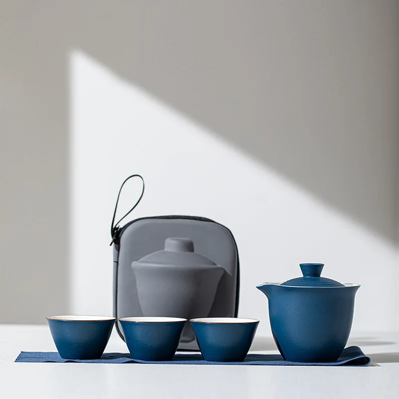 1 Set Portable Teacup Set Travel Kit Ceramic Kung Fu Teaware Ceramic Outdoor Camping Adults Chinese One Tea Pot Three Cups Gift