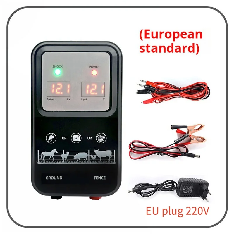 10KM Electric Fence Energiser for Cattle Sheep Horse Animals Farm Livestock Pulse Transformer Device Electric Shepherd Kit 12V