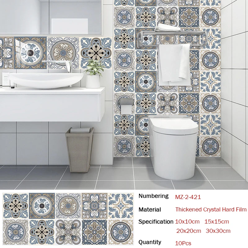 10pcs Bohemian Style Tiles Wall Sticker Kitchen Backsplash Oil-proof Bathroom Wardrobe Waterproof Peel & Stick Art Wall Decals Received Size: 10cm*10cm*10pcs 15cm*15cm*10pcs 20cm*20cm*10pcs 30cm*30cm*10pcs Product material: Environmental protection PVC Features: 1 The floor is covered with movie to forestall scratches, it's best to tear it off before use 2 The crystal movie has increased gloss, and the wear and tear resistance and waterproof effect might be larger 3 surface, the surface will replicate 4 Like a tough card, it isn't smooth to bend 5 Self-adhesive, tear off the again protective paper and stick it immediately on the wall or tiles (Peel & Stick) 6 Bright colours and full color 7 Can be used in eating tables, wardrobes, refrigerators, kitchens, toilets, waist lines, tiles, diagonal decoration, and many others