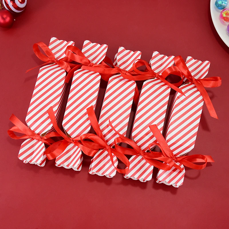 10PCS Joyful Red Striped Candy Shaped Boxes Wedding Favor Gift Boxes With Ribbon Kids Christmas Birthday Party Cracker Box Decor